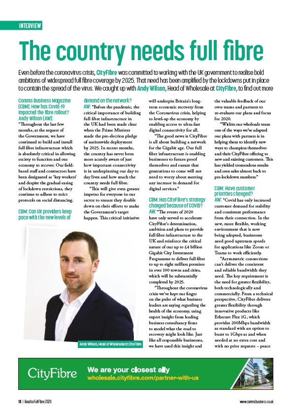 to contain the spread of the virus. We caught up with Andy Wilson, Head of Wholesale at CityFibre, to fi nd out more