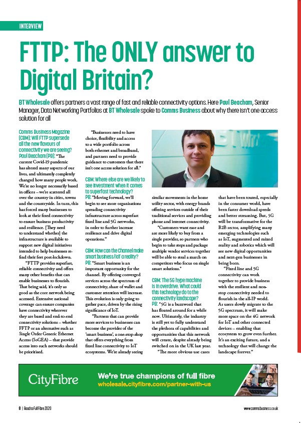 8 | Road to Full Fibre 2020 www.commsbusiness.co.uk