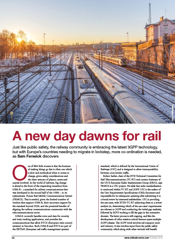 Just like public safety, the railway community is embracing the latest 3GPP technology,