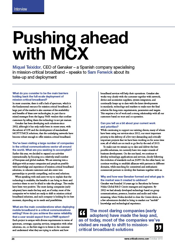 in mission-critical broadband – speaks to Sam Fenwick about its