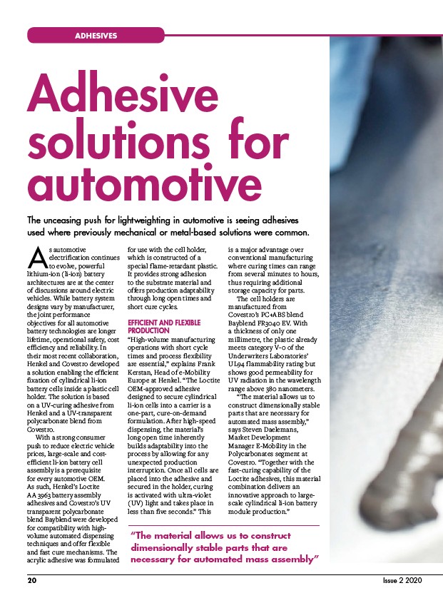 The unceasing push for lightweighting in automotive is seeing adhesives