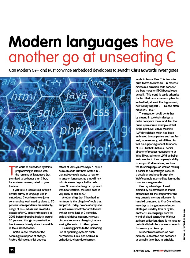 Can Modern C++ and Rust convince embedded developers to switch? Chris Edwards investigates