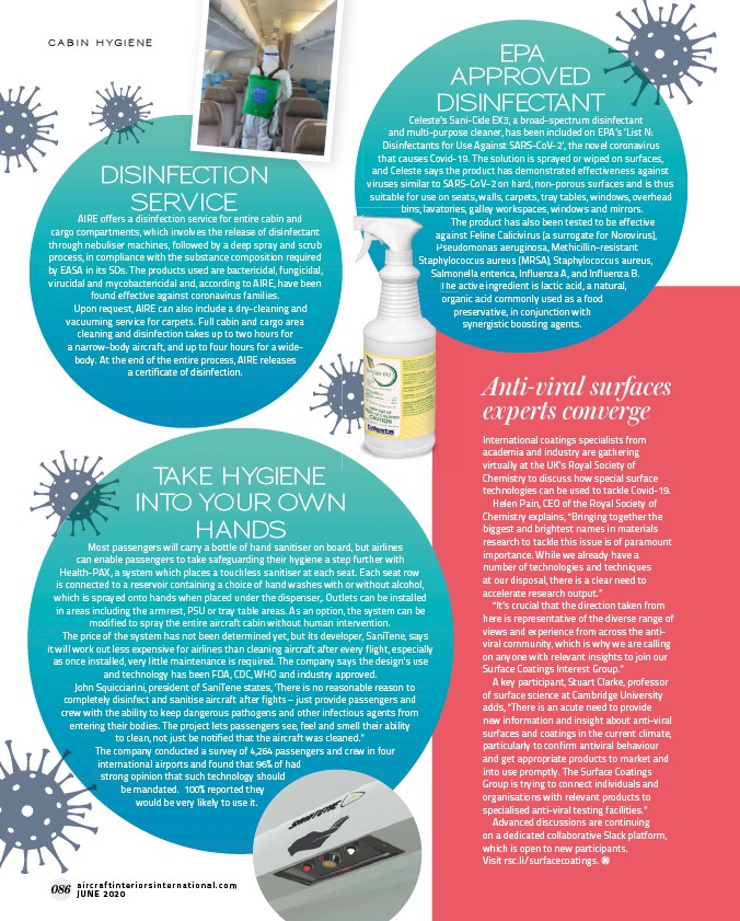 by EASA in its SDs. The products used are bactericidal, fungicidal,
