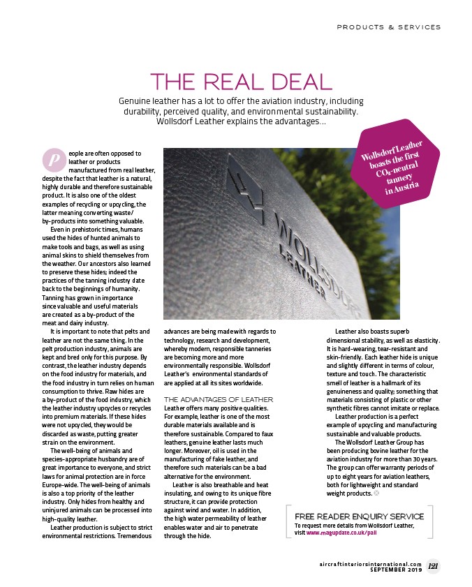 Genuine leather has a lot to offer the aviation industry, including