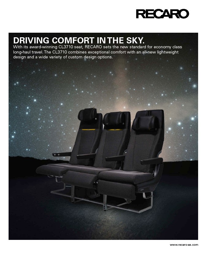 With its award-winning CL3710 seat, RECARO sets the new standard for economy class