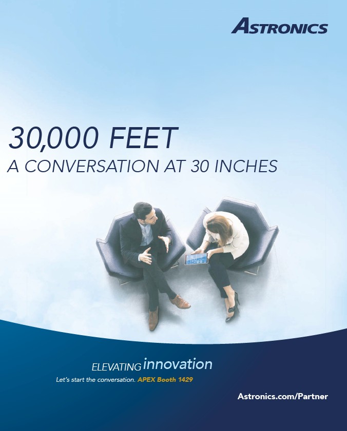 A CONVERSATION AT 30 INCHES Astronics.com/Partner AT 30,000 FEET ELEVATINGinnovation Let’s start the conversation. APEX Booth 1429
