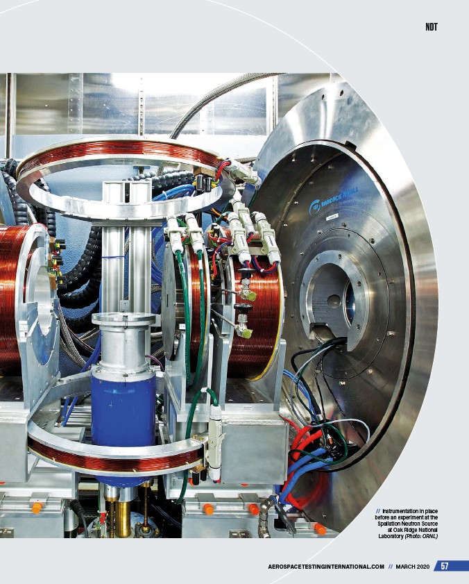 NDT // Instrumentation in place before an experiment at the Spallation Neutron Source at Oak Ridge National Laboratory (Photo: ORNL) AEROSPACETESTINGINTERNATIONAL.COM // MARCH 2020 57